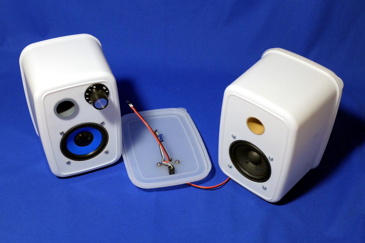 同じユニットのスピーカは用意していないので、昔作ったタッパースピーカをつないでみたが、さほど違和感はない。ちゃんとステレオで鳴った。よっしゃよっしゃ。