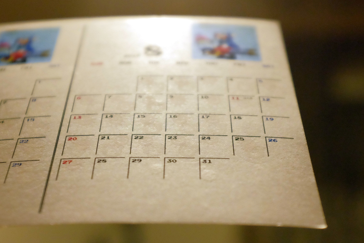 さっそく、ケント紙を手差しして卓上カレンダを印刷してみた。体操カードもだ。体操カードは「ネットプリント」サービスで印刷したものの裏に印刷。印刷クオリティはさすがのもの。んが、手差しだと、上端と下端で1mmくらいナナメるなぁ。ハガキだと特に顕著だ。しかも、印刷開始位置も安定しない。気にしなければ、気にならないが、裏表を合わせたりするなど、用途によってはキビしい場合もあるかもなぁ。