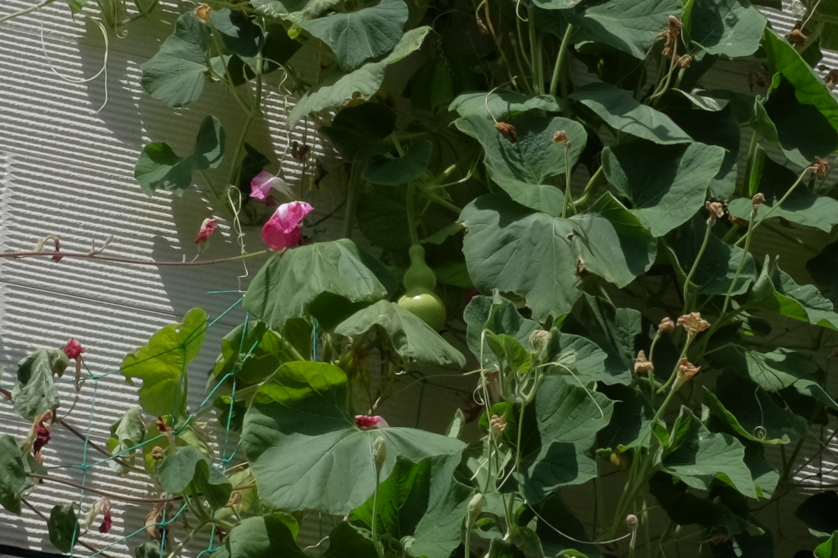 先日のコペン(MT)に引き続き、マツダロードスターの試乗に行くことにした……ら、自宅の壁に伝わせているひょうたんが結実しているのに気づいた。花はバンバンと咲くけども……と心配していたが、ひとつでも実ってくれてうれしい。
