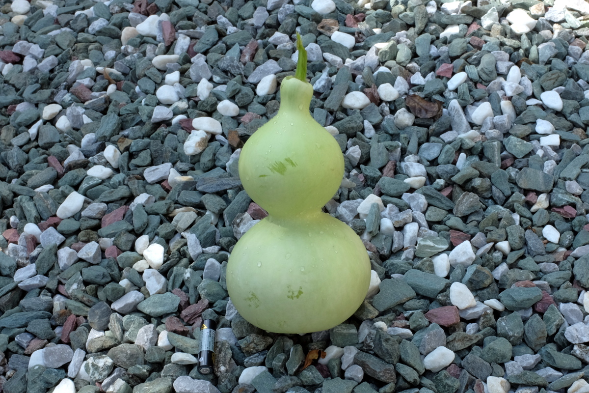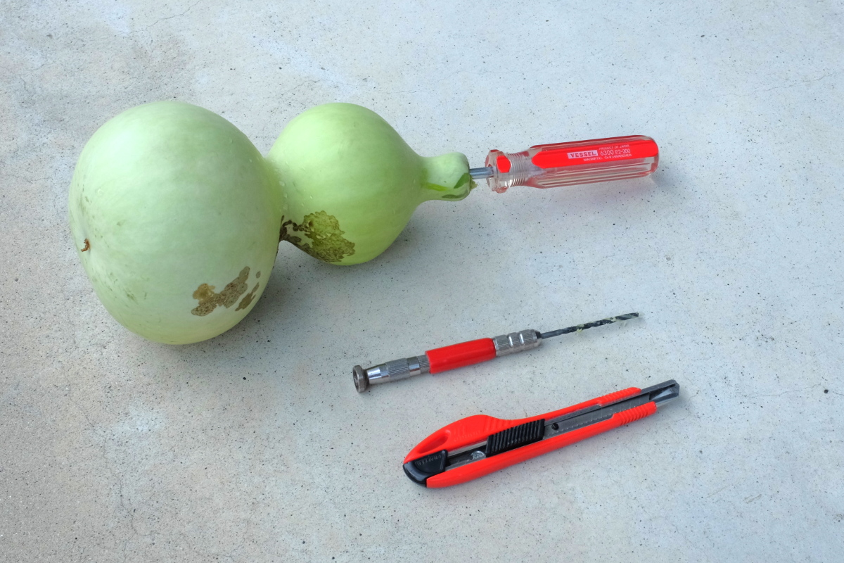 ひょうたんの子どもたちがポツポツとついてきたし、長男の大きさがエラいことになってきたので、長男だけ収穫することにした。ちょっと早いような気もするが。