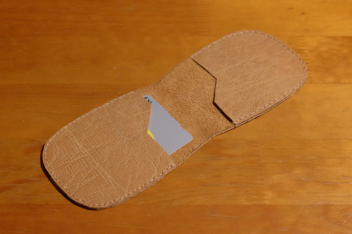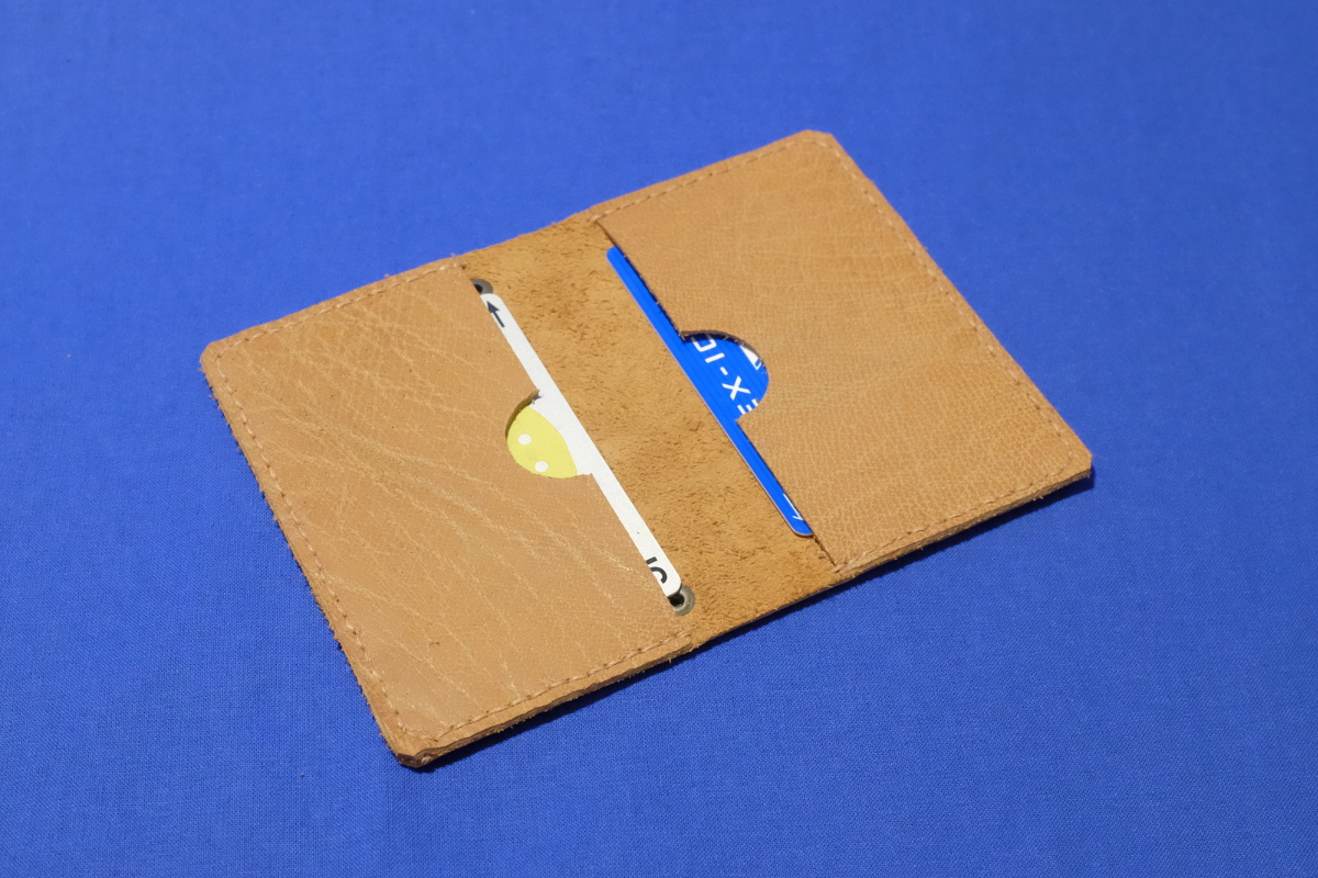 さて、昨日のレザークラフトだが、カミさんも作りたいというので、適当に型に切ってやったら、縫い合わせてそれっぽいカードホルダが完成した。