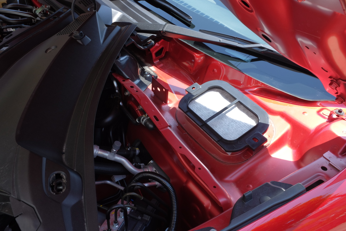 とかいいつつ、整備書には、カウル・グリルの取り外しの前には「ワイパー・アーム」と「ウオッシャ・ホース」を外すよう指示があるのだが、これは守っていない。んが、カウル・グリルの取り付けは割と緩いので、ちょっと角度を工夫すれば、知恵の輪の要領でズラすことができた。今回の目的にはこれで十分。