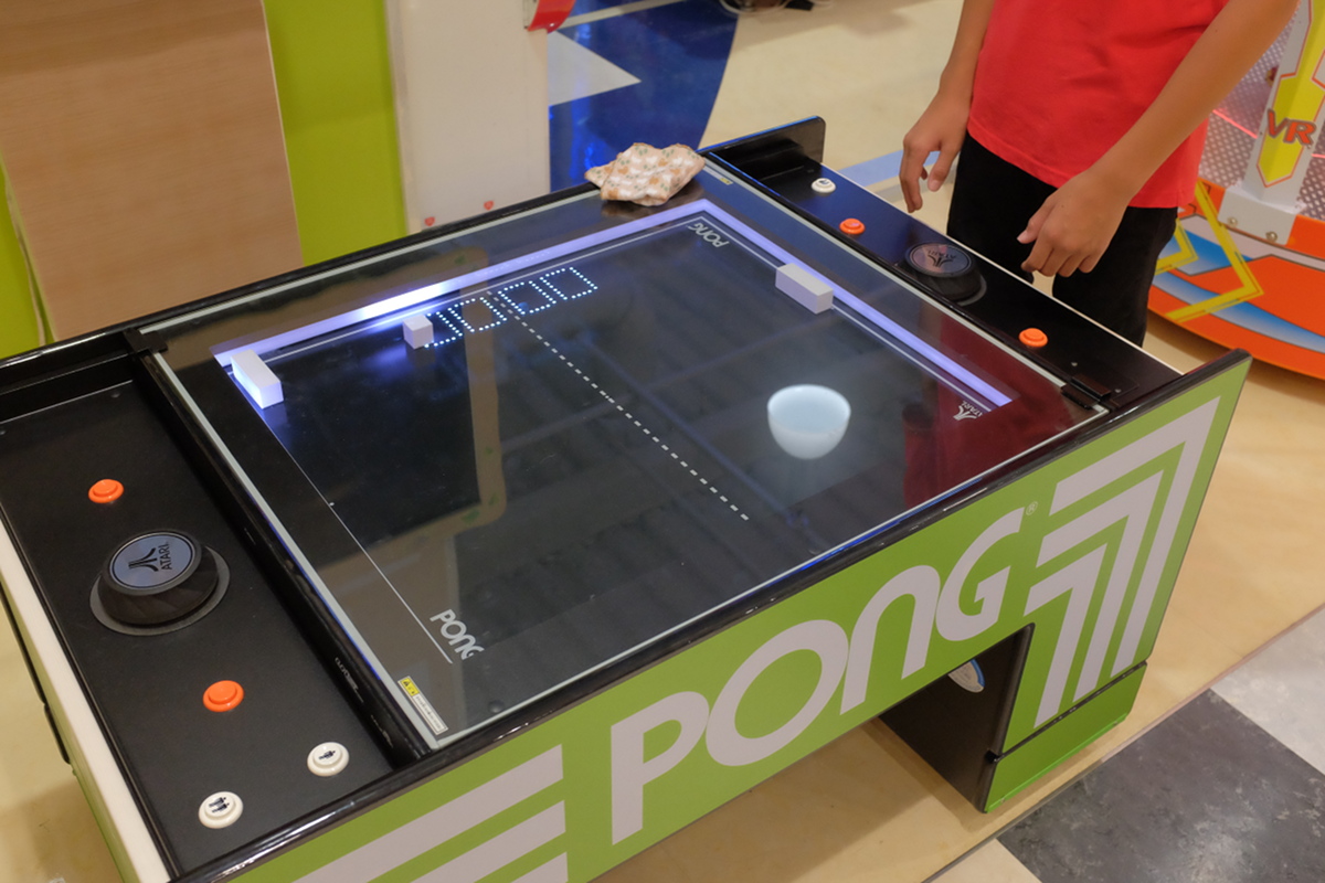 ……とッ!? ゲームコーナの片隅に、あのアタリの「PONG」!? ……の、エッ、エレメカ版!? こ、この発想はなかったわ。