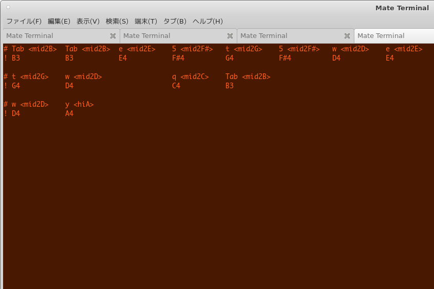 で、リニューアルしたcuickdtmのお試しとして、レミオメロンの粉雪という曲の音を採ってみる。なんでも、この曲、サビに例の「hiA/440Hz/A4」が出てくることで有名らしい。konkではちょうど「Y」のキーが「hiA」になる。弾いてみるとこんな感じ。