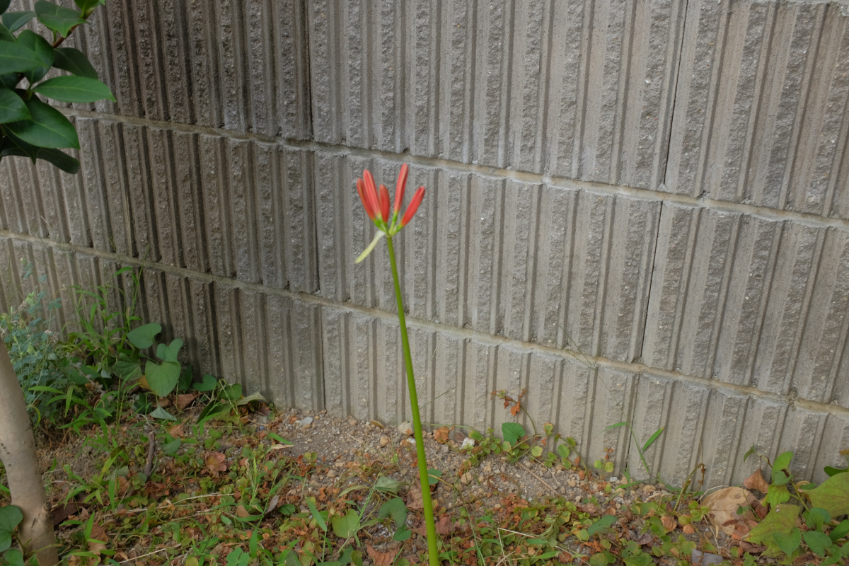 昨年、非常に正確な時期に咲いていたので、今年は咲かないのかと思ったいたら、気づくと蕾が現れていた。しかし、白い方はお休みのようだ。向かいの花壇の赤も。