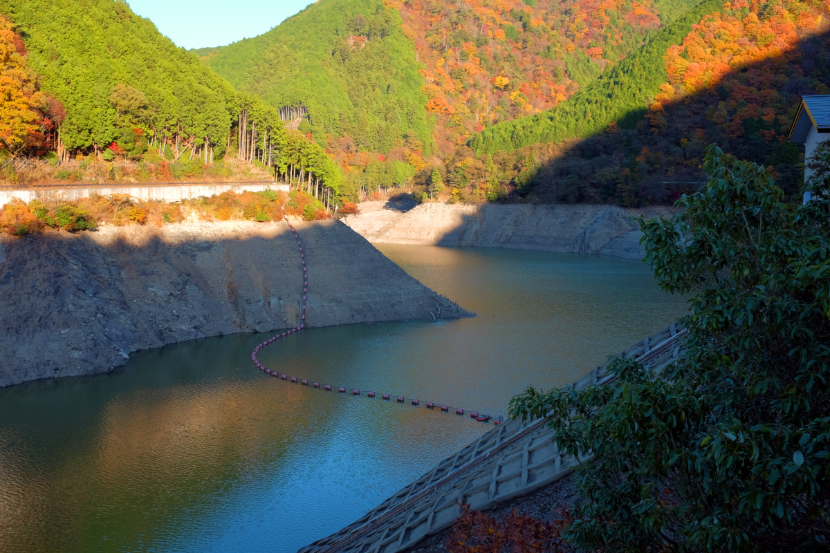 紅葉がいい感じ。名所に行くより、山道を走ったほうがいい。そんな道中、野洲川ダムの水が、かなり干上がっていて、光景が無残だったのが印象的であった。