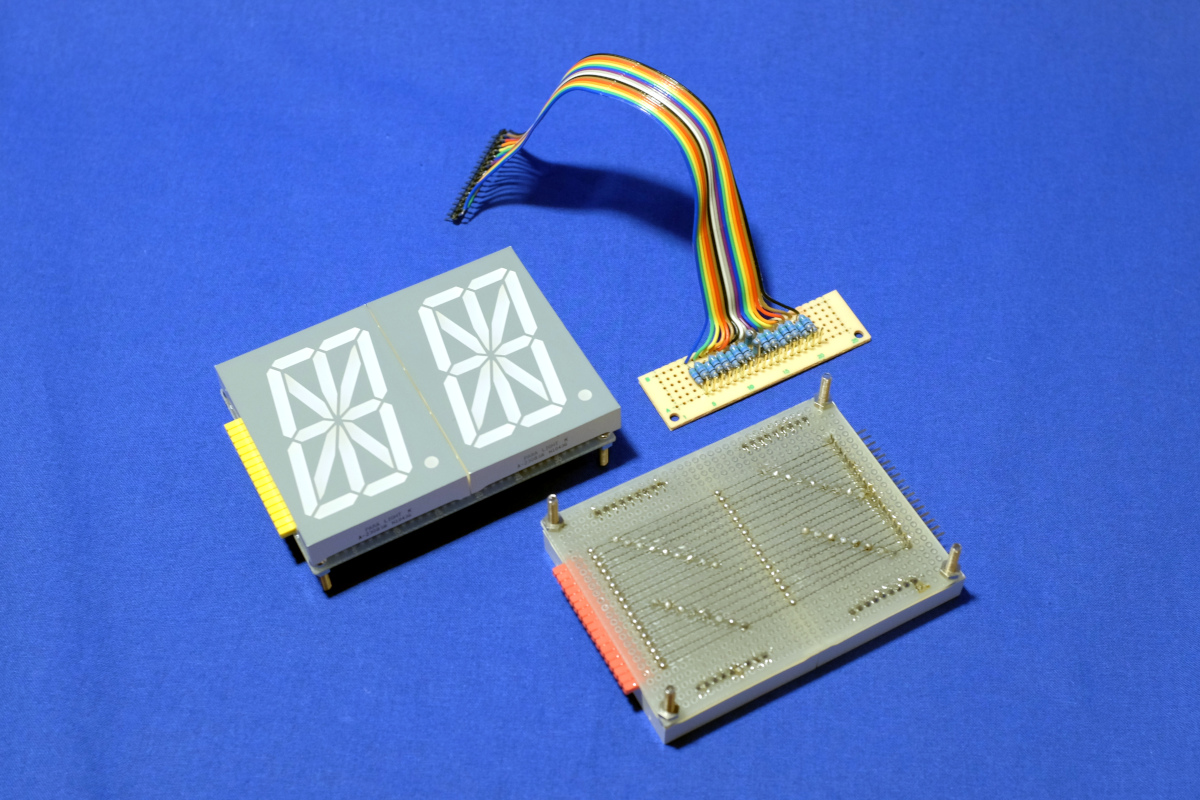 早く製作しないと、せっかく買った16セグのLEDの部品が遺品になってしまう、と思ったのだが、いつ購入したものなのやら記録がない。と、このブログを検索すると、なんか違う16セグも購入してるやんけ……確かに部品棚に残ってるわ……。