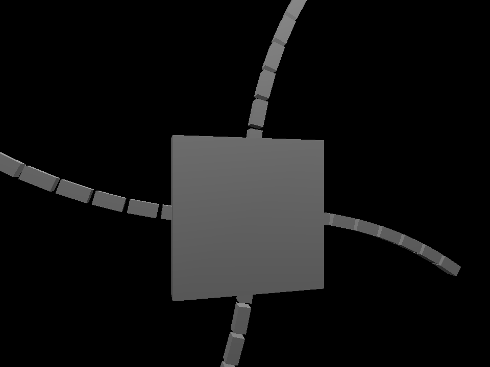 再び、それっぽくなったところで、回してみたいところだが、自製のOpenGLライブラリでアニメーションさせるためには、足をスプライトの扱いにする必要がある。先のタートルグラフィックスのコードは、スプライト機能を実装する前に実装した機能なので、スプライトとして扱えない。そこで、改めてスプライトとして扱えるよう、タートルグラフィックスの処理をModule化して、スプライトクラスからもincludeするように変更した。いや、Rubyってスゴいな。で、本体コードにもちょっとコードを足す。