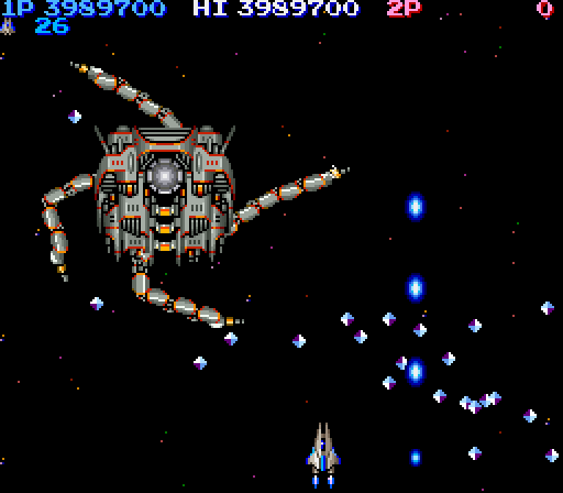 そして、テトランといえば外せないのが、グラディウスIIで見せた「ひっぱたき」である。たぶんそうだろうなぁ、と思いつつ実装してみたら、やっぱりそうだった。長らく「もぞもぞ」しているのも勝手に再現された。実は、実装はものすごく簡単なのだ。たった1行である。