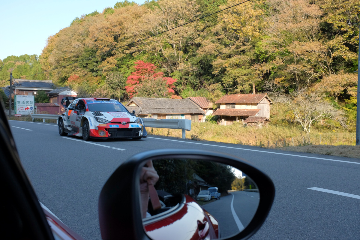 少しコンビニで小休止して岡崎方面へ。少し早いので、ワザと遠回りしてから、再びリエゾン区間の逆走を始め、SS13/14 Okazaki Cityに向かうラリーカーを迎撃する。それでもあまりラリーカーが来ないので、退避車線を見つけて小休止すると近づいてくる爆音が。2枚だけX100Sで撮影。1枚目はブレたが、2枚目は割とちゃんと撮れた。と、なんとそれはトップクラスであるカーナンバー1のオジエ選手だった。ちょっとラッキー。その後には、カーナンバー18の勝田選手ともすれ違っていた。まぁ、そこそこ計画したとはいえ、十分すぎる豊作であった。