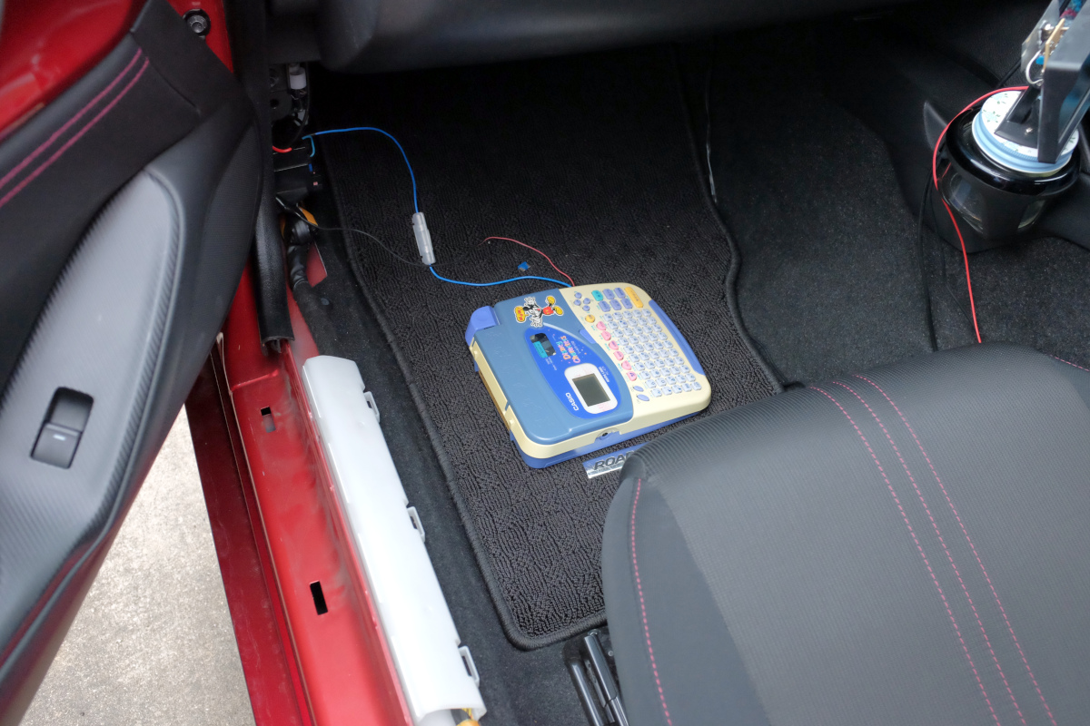例によって、先のメモリバックアップ用電源装置(ラベルプリンタ型)を適用してみたが、ロードスターの場合、時計とオーディオの設定くらいで、ほとんど失う情報がない。なので、マイナスのワニ口をいい加減に噛ませておいたら外れてしまって保持に失敗してしまったw。