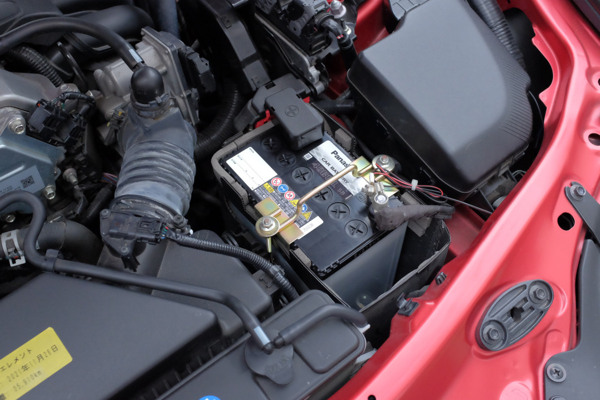 交換するバッテリはパナソニックの40B19Lという、ごく普通のヤツ。だが、標準サイズの46B24Lではない。幅が2割くらい短く、11kg→8kgと3割くらい軽いもの。ロードスター研究所というサイトのマネッコである。