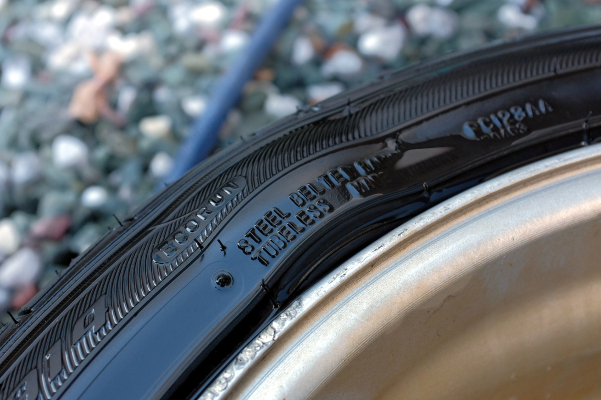 というわけで、注文し、一週間弱ほどで届いたのが1/28。その翌日、今度こそすべての問題の解決を目指してピット作業を済ませ、その後は何の問題も出ていない。コブ持ちタイヤはそのまま工房に置いてある。スローパンクチャも起こしているが、ローテーション作業や、イザという時にテンパータイヤとして100km前後を走る程度のことには使えるはずだ。あとはホイールの観賞用w。