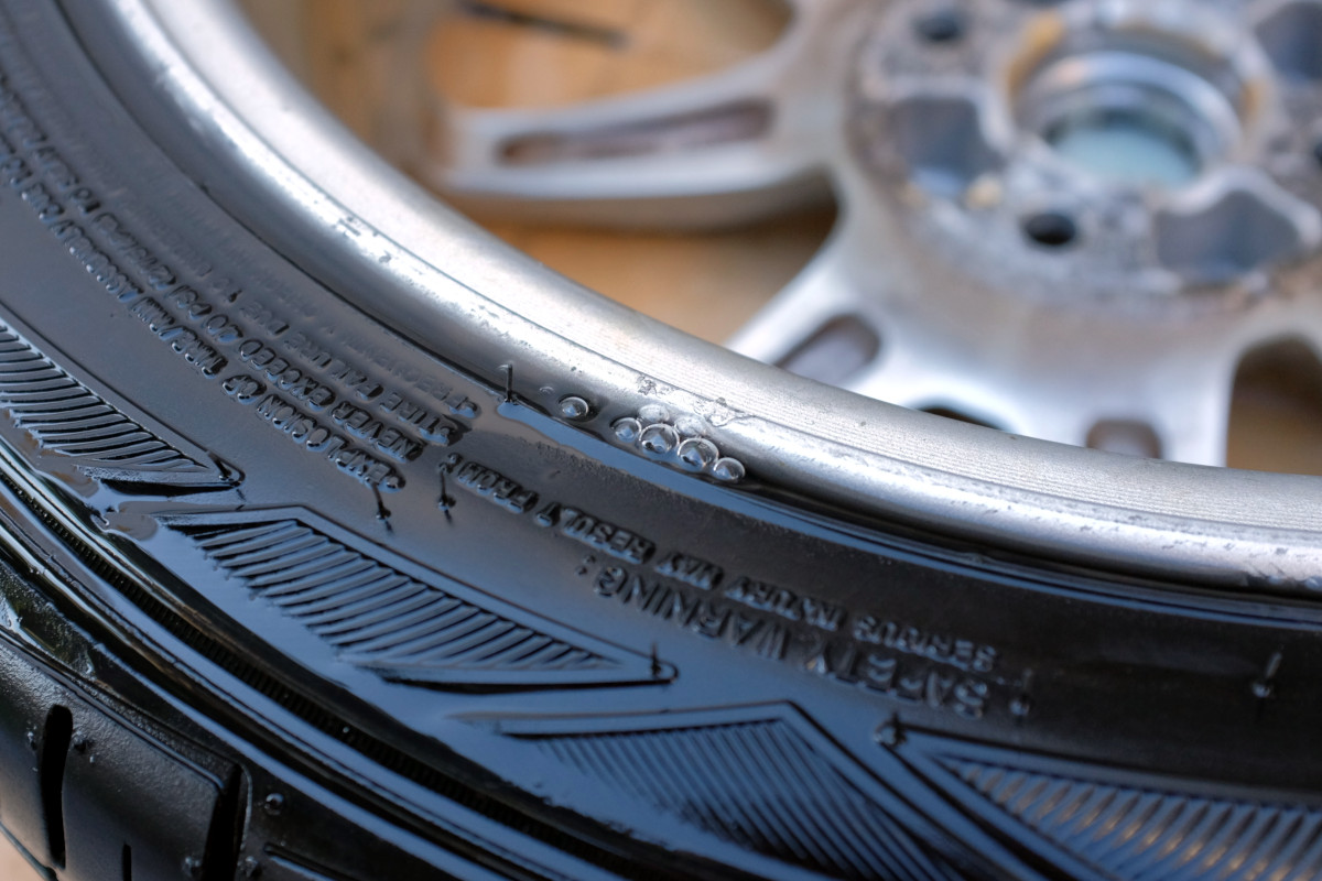 空気はかなりの速度で抜けるので、すぐに交換用のパッキンを手配し、その翌週末にはタイヤだけレンタルピットに持ち込んで修理を行った。この時点では、締め方が足りない、という明確な認識はなかったので、それでもややユルめに締めた状態で作業を終えた。