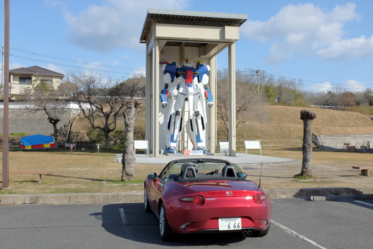チェックアウトして出発。すぐに近くの道の駅久米の里に寄る。これは偶然ながら事前にチェックしていたのだが、ちょっと前に話題になった個人製作のゼータガンダムがあるらしいからだ。自分はガンオタではないが、だいぶ大きく、見ごたえのあるものであった。