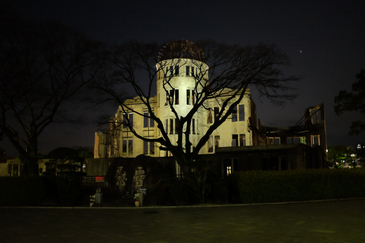 今日も散歩に出る。広島はアストラムラインという新交通システムが通っていて、市の中心地から宿まで1本で戻ってこれる。ほんじゃ、というわけで市の中心地へ向かったが……ちょっと無理しすぎたか。歩けども歩けども着かない。なにせ12km以上ある。途中からムキになりつつ、原爆ドームまで辿り着くが、すっかり暗くなっていた。そのへんのお好み焼き屋で広島風お好み焼きを食う。あまりに無茶して歩いたので、一杯目のビールは瞬殺。二杯呑んでクーポンを使い切り、アストラムラインで宿に戻る。