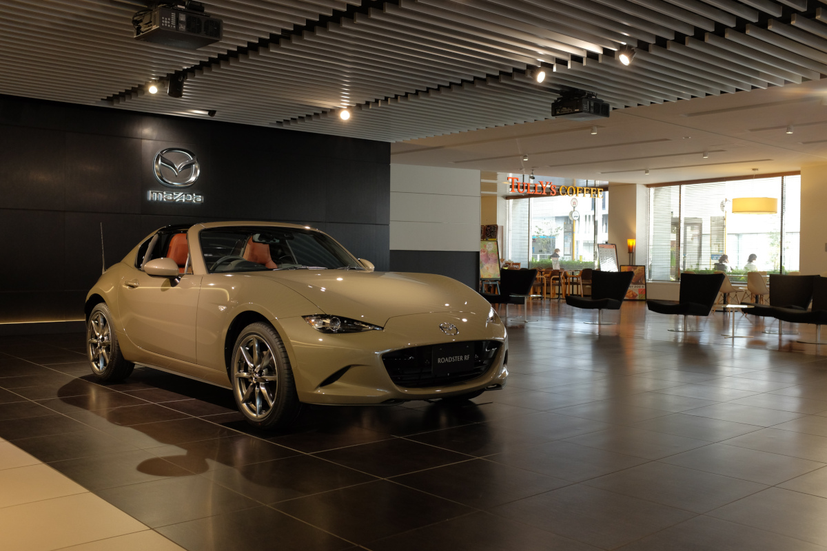 集合は9時15分なので余裕はみてあるのだが、大した距離でもないのに1時間以上を要して到着。さすがは世界一の自動車メーカ。キレイなロビーである。ロードスターやCX-90が置いてある。しばらくして時間になり、バスに乗ってください、となったが、平日なのに20人前後もの参加者である。