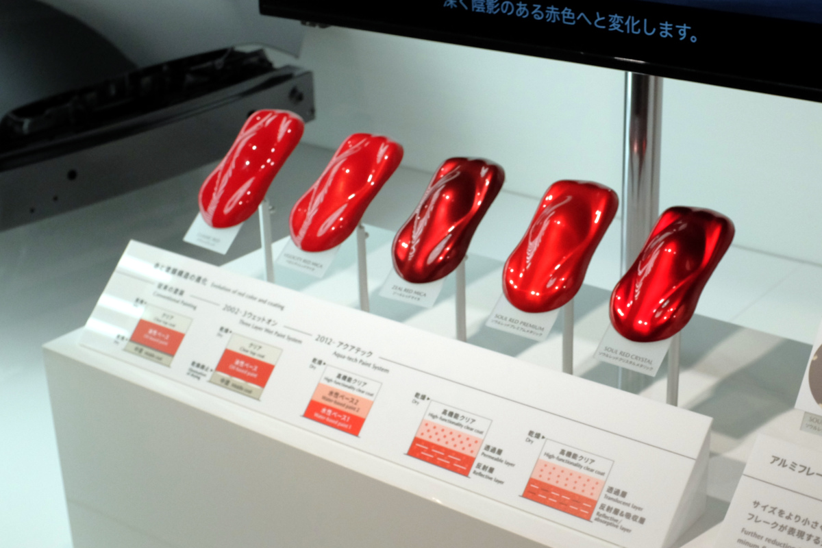 ミュージアムは、歴代の車から、現行の車、要素技術の紹介、生産ラインの見学という流れだが、塗装技術の展示の中で「ソウルレッドプレミアムメタリック」と「ソウルレッドクリスタルメタリック」の違いが目を引いた。自分のロードスターはいわゆるND2で、クリスタルに変更になった直後のモデルなのだが、ここまで陰影の強さが違ったとは。