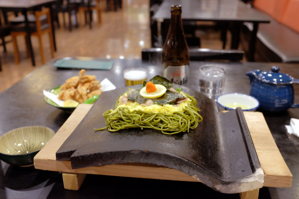 予定通り19時には戻り、元祖瓦そばたかせ川棚南本館へ。瓦そば、竜田揚げ、瓶ビールを注文。瓦の熱量がスゴく、食べるタイミングの調整でパリパリになるソバがうまいのなんの。去年、職場の近くでも瓦そばを食べたが、こんなにウマかったっけな。やはりさすがは元祖なのか。