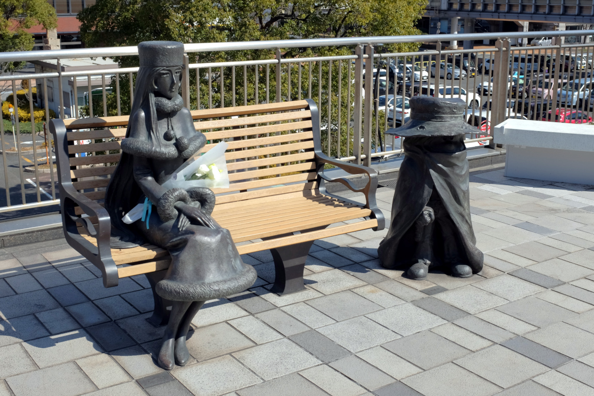 帰りは若戸トンネルを通って小倉駅に戻るのだが、再び渋滞に巻き込まれ、時間を気にしつつ、カミさんとのランデブーポイントである小倉駅自動車整理場に到着。少し時間に余裕を持たせたのは、駅にあるキャプテンハーロック、鉄郎、メーテルの銅像を見るためだ。なんか、イタズラしてあるのかと思ったら、像に花束が挿してあった。奇しくも、松本零士氏の訃報に接したのは、この旅行中。松本ブームに育った自分には、生き様の多くの部分で彼の作品の影響を強く受けており、彼を第二の親父だと思っているほどだ。またいつか遠く時の輪の接する処でお会いできたらと思います。
