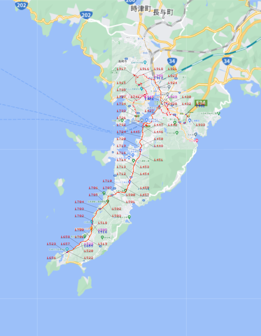 国道206号を南下する。この206号、渋滞どころか信号も少ないし、そこそこカーブもあるのだが、長崎に向かう唯一の道なので、何しろ前後のメンバの入れ替わりがなく、延々と同じメンバで走り続ける感じで、つまらないことこの上ない。まれに止まる信号が、むしろイベントとして楽しく思えるくらいだ。こんなこともあんだな。