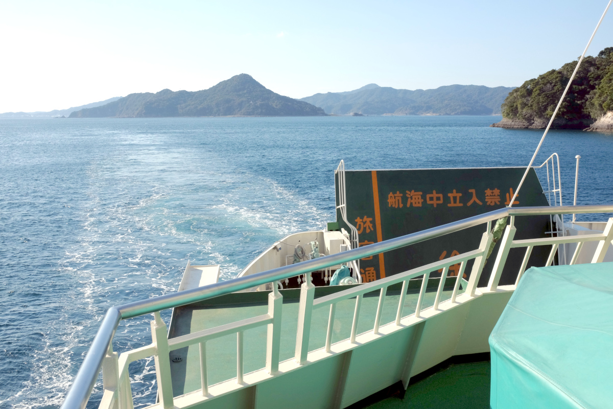 そして、人生の初フェリーから、4時間を経ずして2回目のフェリー。すっかりベテラン気分で乗り込む。牛深港から蔵之元港までは、30分前後と同程度で、船の規模も似たようなもの。やっぱり、あちらこちらを見て回り、到着したら下船。船の前方の口が開くのを待って、そのまま走り去る。走り去る時の開放感がいいな。