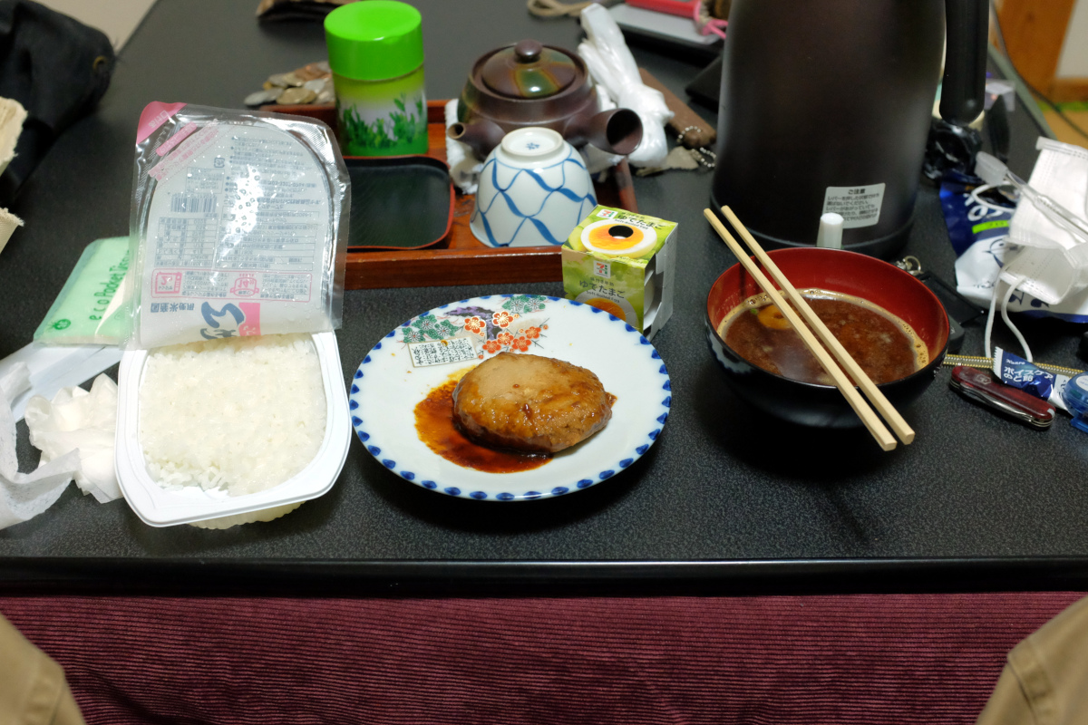 今日も6時起き。すっかり早起きが定着。宿に備え付けのレンジを借りて、昨日に準備した「袋のまま立てて温められる」という惣菜を温めようかと思ったら、庫内の高さが足りず不可。仕方ないので頭をひねり、レジ袋に惣菜を入れ、そこに熱湯を注いで湯煎したらいい感じに温まった。食ったら狭い部屋をやりくりして荷物をまとめ、すぐに出発。