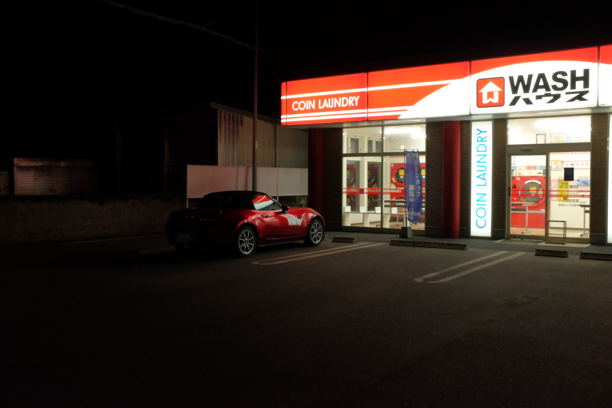 しかし、今日はまだやることがある。洗濯だ。宿にランドリーがないので、洗濯物をまとめ、事前にチェックしておいたコインランドリーまでクルマで向かう。歩きたかったが、夜にちょっと遠すぎる。洗濯中はヒマなので、コンビニでコーヒー買って飲んだり、電子書籍でマンガ読んだりして過ごす。乾燥は……ちょっと生乾きだが大丈夫かな、と撤収。