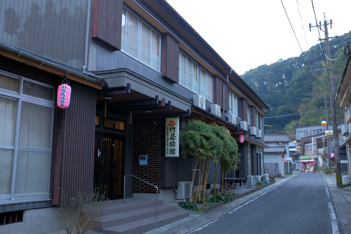 さて、ぼちぼち宿が近づいてきたし晩飯の調達をしなきゃ、と思ったのだが、ちょっと遅かった。コンビニがない。道の駅はあるが、食堂は早く閉まるし、晩飯っぽいものが売っていない場合もあり、実際に売ってなかった。結局、そのまま今日の宿である竹屋旅館本館に着いてしまう。