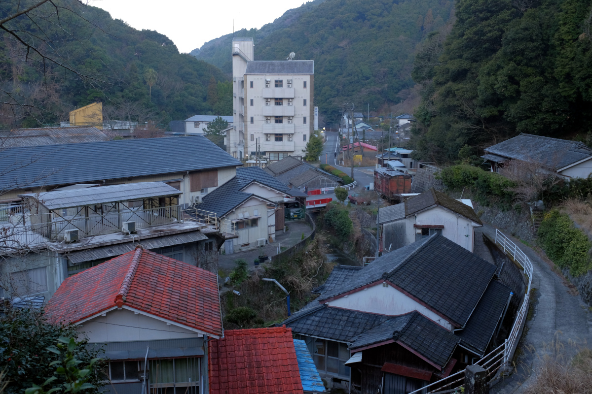 荷物をまとめ、クルマに向かうと霜が下りていた。寒いわけだ。すぐに身支度をして、昨日は暗くてよく見て回れなかった温泉街を散歩。西郷さんの訪れた湯という、これまたいい感じに時代の付いた温泉もある。近くに展望台という案内があるので行ってみると、確かにそれなりに見渡せる場所に行きついた。なんとも味のある温泉街だ。近所じゃないのが悔しい。