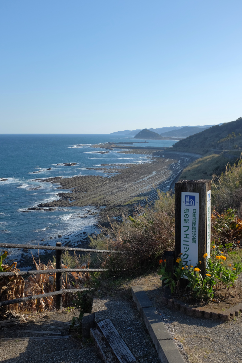 本当は、IHIスペースポート内之浦という場所で昼飯にしようと目論んでいたのだが、いざ通りかかると全面舗装されていて雰囲気が変わっているし、チェーンで入れないようだった。さっきの場所で食ってよかった。その後、なんとなく道の駅くにの松原おおさきで休憩、しばらくして志布志。フェリーで大阪とつながる場所だ。なにかあれば、ここからショートカットして帰ることも考えていたが、現状その必要はないので通過する。