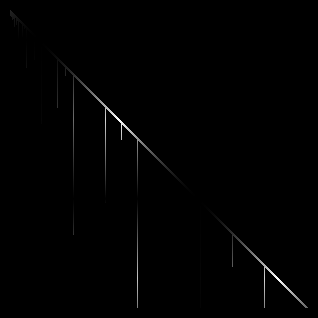 動きを図化するとこんな感じだ。横軸がバックアップ世代、縦軸が時間の経過を意味している。概ねどの時間に着目しても、その時点の中間点と、中間点以降での中間点あたりの世代がまばらに残される動きになっている。フラクタル的にも見えるな。