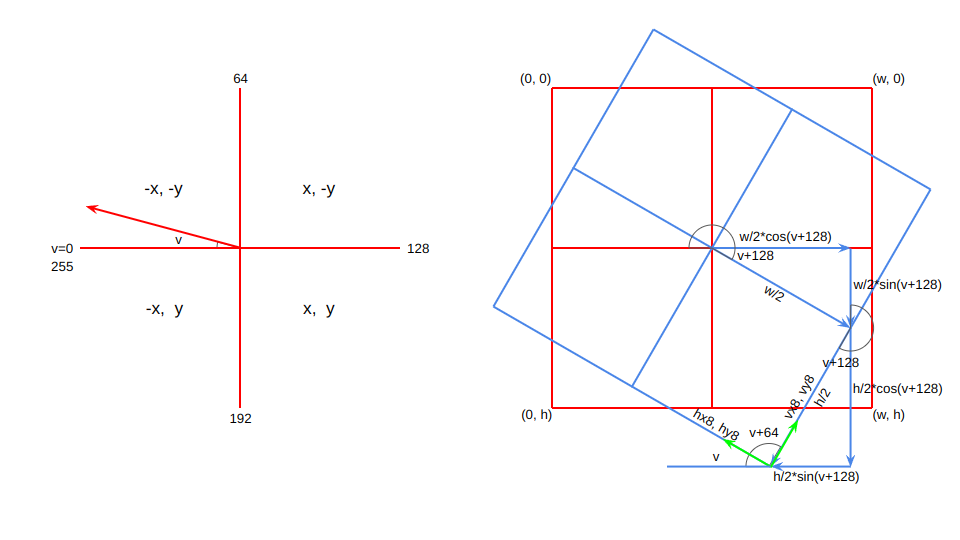 _vx8 = dx * rxy[0] - dy * rxy[1] + (dx << 8) # サンプリングxy開始点