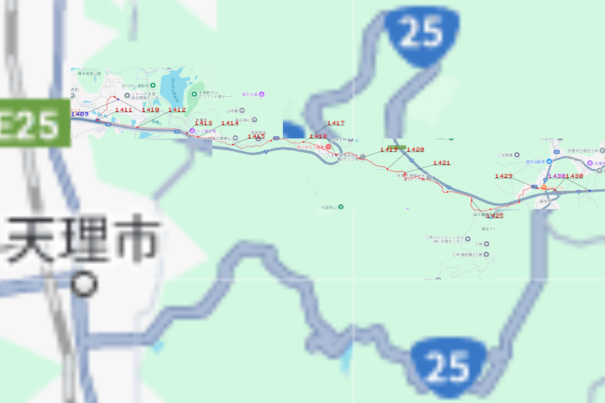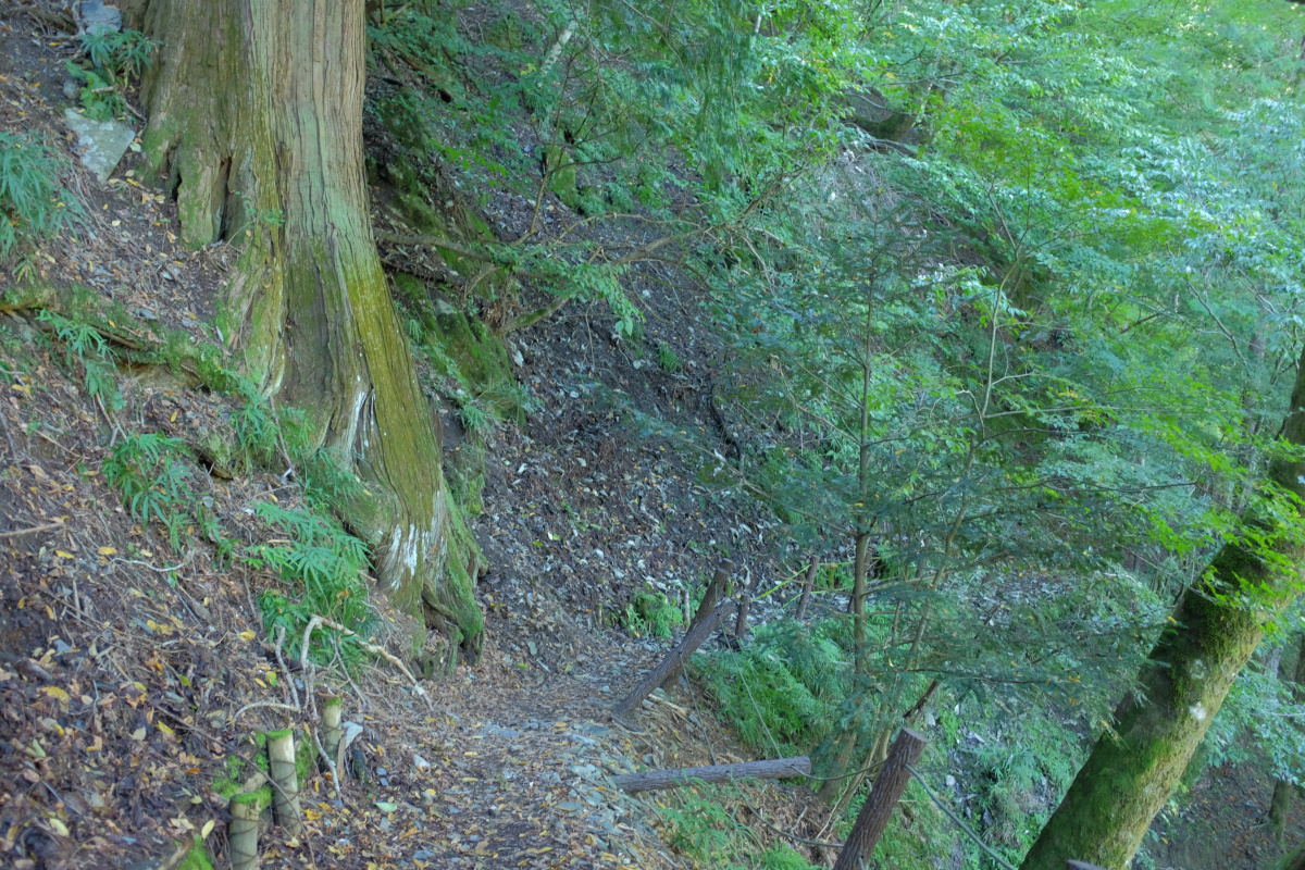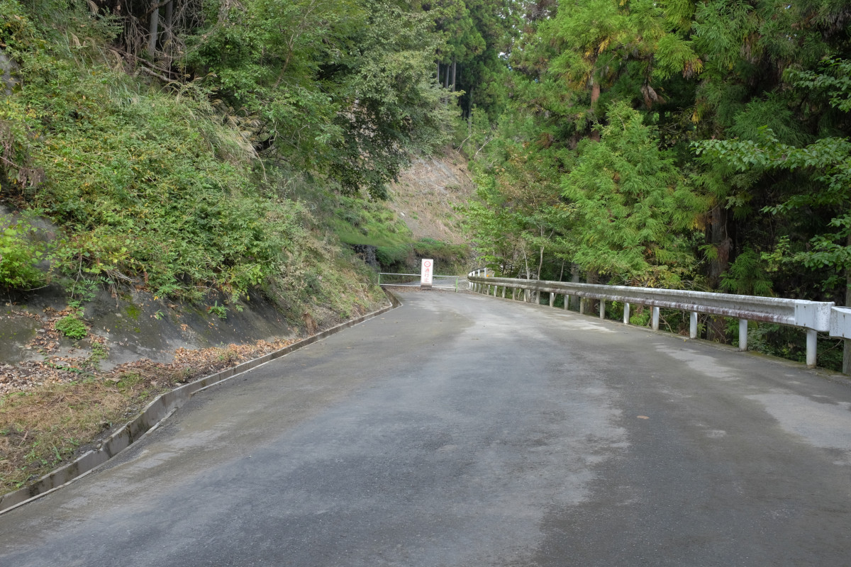 ロビーでお茶して友人とはお別れ。そして……前から通りたかった「オメガカーブをショートカットする狭い道」に挑戦することにした。都祁山道(つげさんどう)という路線の一部らしい。入口には「中型車以上通行困難」とあり、通る必要はまったくないのだが、自分的には通らない選択はない。ちょっと怖いが、イザッ!