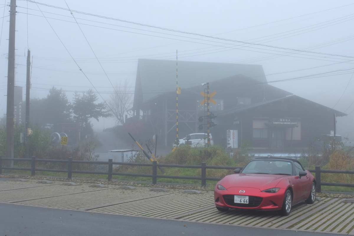 気づくと後にNCロードスター。老夫婦っぽかったが、幌を開けていない。と、気づけば自分も雨で幌を閉めてた。止んでいたのでオープンに。するといつしか、後のNCもオープンになっていた。無言のコミュニケーションw。別れ際に軽いクラクション。手を挙げて応じる。しかしその先の299号は霧も出て不気味な雰囲気。先行車がいるのは好きじゃないが、今回ばかりはいなければちょっと心細かったかも。