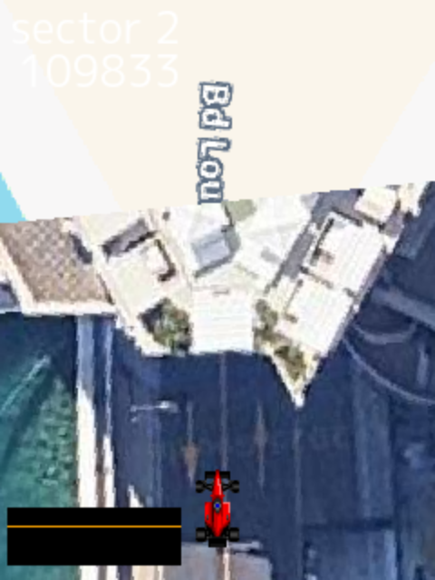 先日、自製の「TopDrivin'」でモナコを走れるようにしたのだが、問題はトンネルだ。航空写真では、コースはホテルの屋根にしか見えないので、トンネルの出口にたどり着くことができない。まぁ、そんなコースはモナコだけだし、別にマジメに考える必要はないのだが……データを用意して左右のトラックを描画するとか? それだと「TopDrivin'」の「ほぼコースデータを作る必要がない」という特長がスポイルされるんだよなぁ……などと考えていたら、名案が浮かんでしまった。