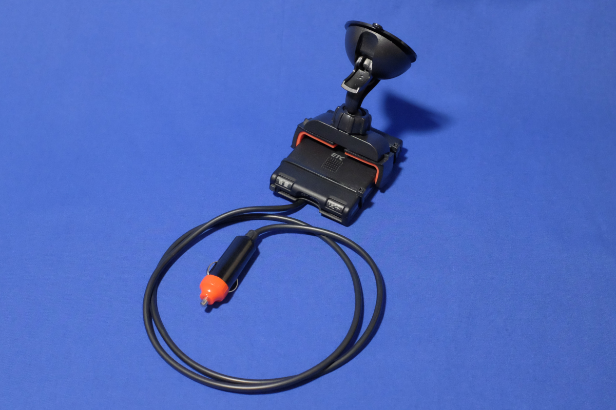 つうわけで、ハナから自分で取り付けるつもりで手配したのだが、なにしろ高速道路を走るのが好きではないので、利用頻度は極めて低い。年に4,5回。そんなための装置をダッシュボードに設置したら目にウルサくてかなわんし、エンジンの始動の都度「イーティーシーカードが挿入されていません」なんつうアナウンスも耳にウルサくてかなわん。なので、電源をシガーソケット対応にして、使う時だけフロントガラスに吸盤マウントでくっつける形にした。まぁ、前に乗っていた軽自動車のときもそうしてたんだけど。