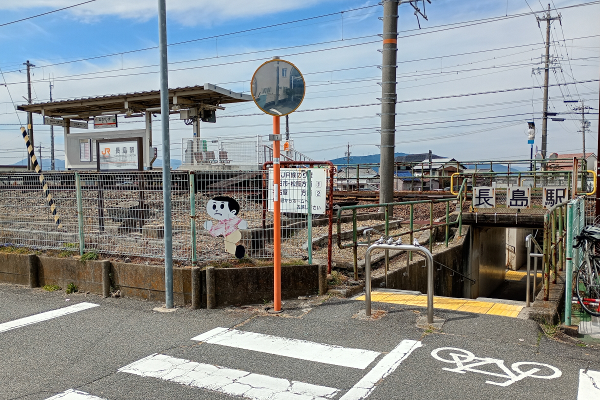 工事が終わったらツーリングに出発。今日は西側へ向かう。まずは、何気にストリートビューで見つけた長島駅。長島というと、長島温泉の華やかなイメージがあるが、JRの駅はなんともシンプル。シンプルながら、なかなか珍しい構造をしているようなので、ぜひ現地で見てみたくて訪れた。