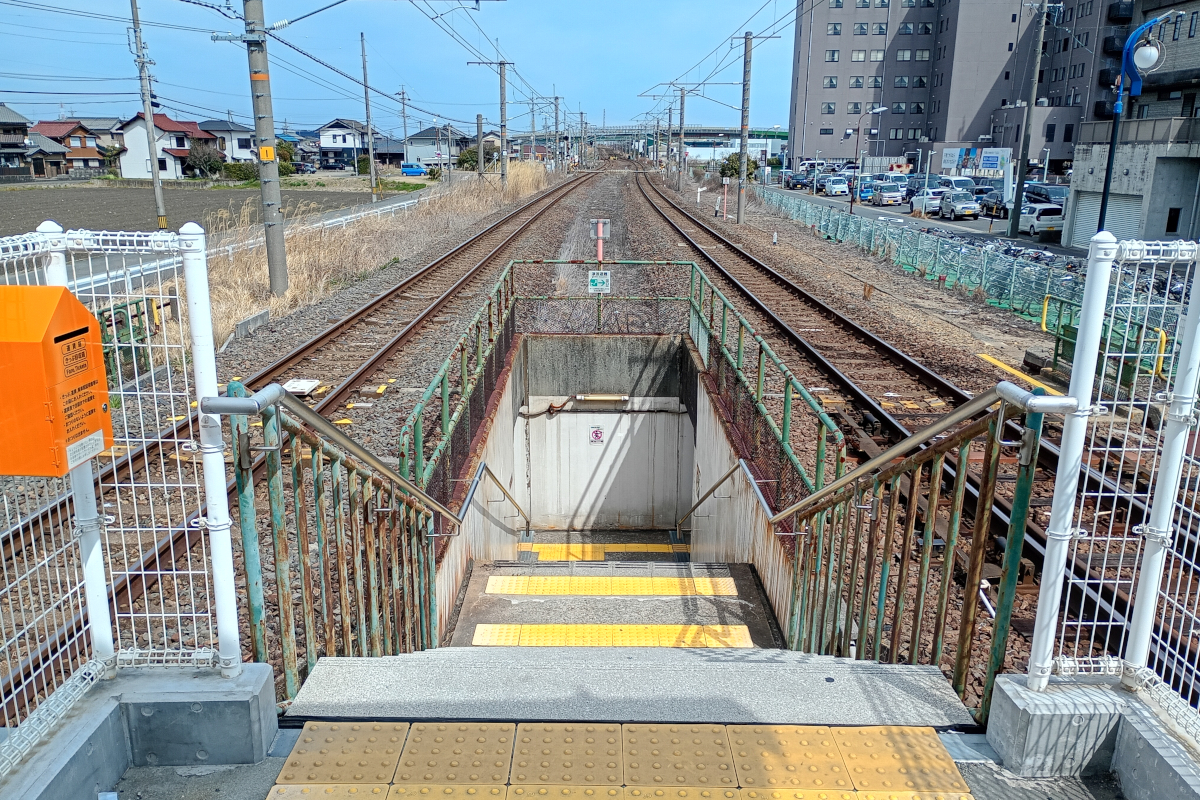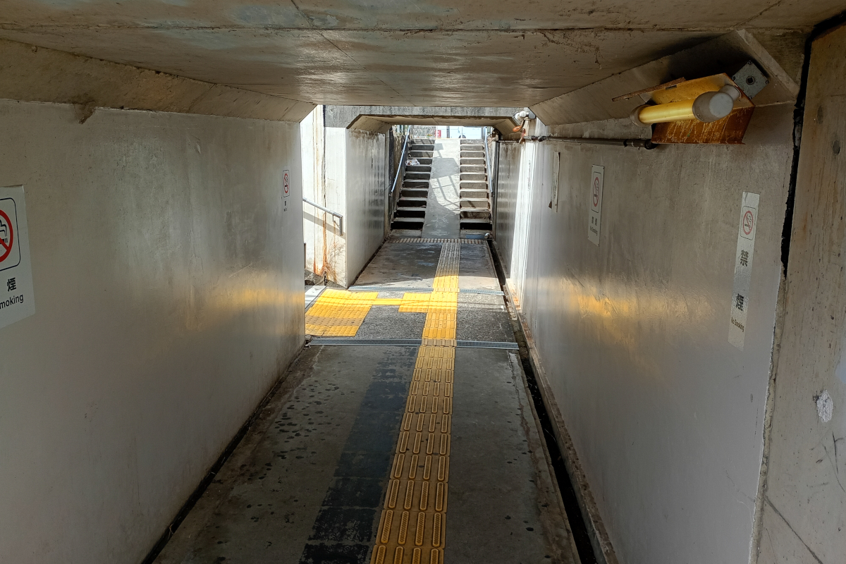 跨線橋の逆パターンではあるが、それによりエラくこぢんまりとまとまっている。ある意味で最適解なんじゃないかと思えるな。まぁ、ホームに上がる階段にいるときに電車がスベり込むと、ちょっとスゴい迫力かもしらんけど。